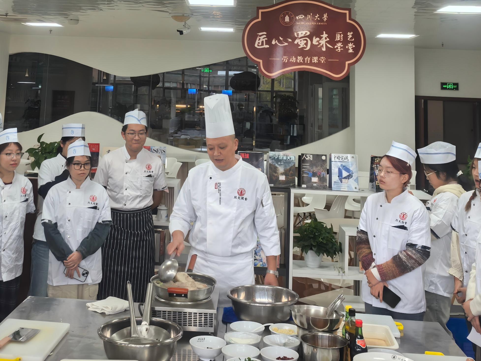 第二期“匠心蜀味·厨艺学堂”劳动教育课于10月24日拉开帷幕,计划连续开展9期,每期30人,旨在通过系统性的厨艺教学与实践,让学生在掌握烹饪技能的同时,深入理解川菜文化,感悟劳动价值,促进全面发展。