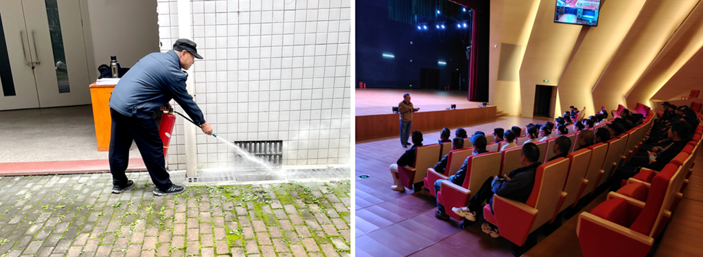 在学校消防宣传月期间,校园物业管理服务中心紧紧围绕“全民消防、生命至上——安全用火用电”主题,精心策划、多措并举,于近期组织开展了一系列形式多样、内容丰富的消防安全主题活动,进一步提升员工消防安全意识和应急处置能力,筑牢校园安全基石。