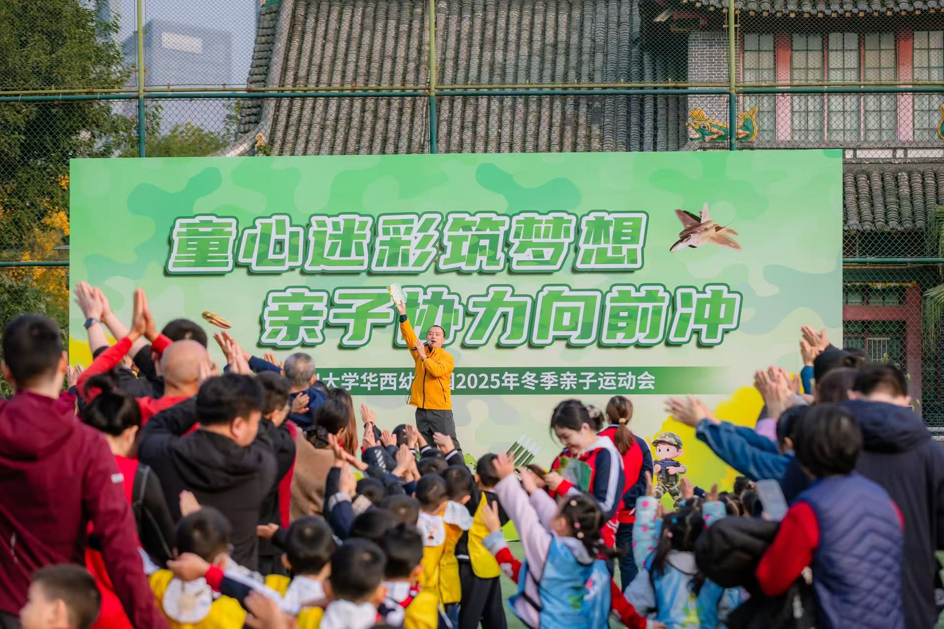 为践行 “健康第一” 的教育理念,筑牢家园共育纽带,近日川大华西足球场上彩旗飘扬、欢声笑语,以 “童心迷彩筑梦想 亲子协力向前冲” 为主题的川大华幼中大班秋季亲子运动会正式拉开帷幕。