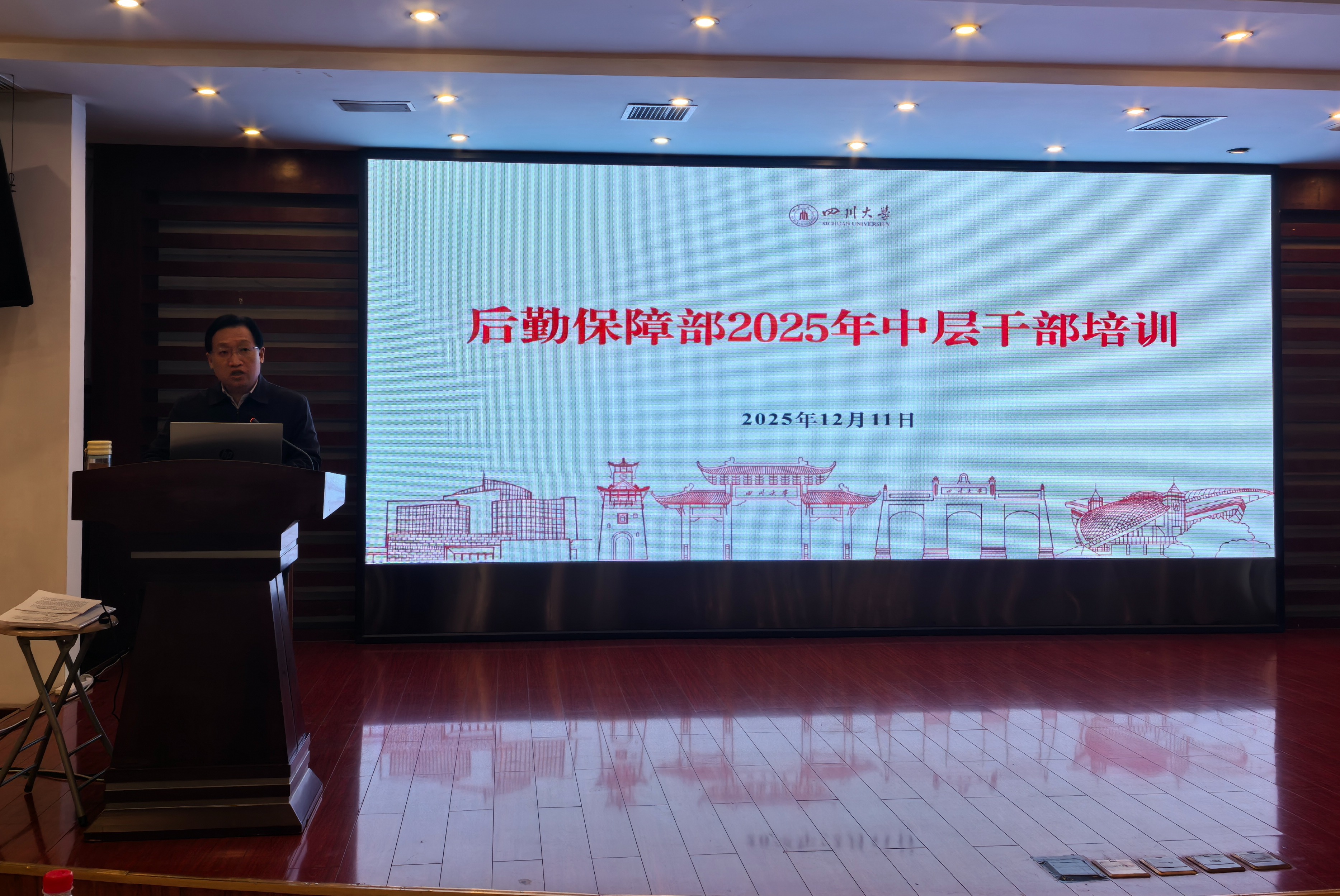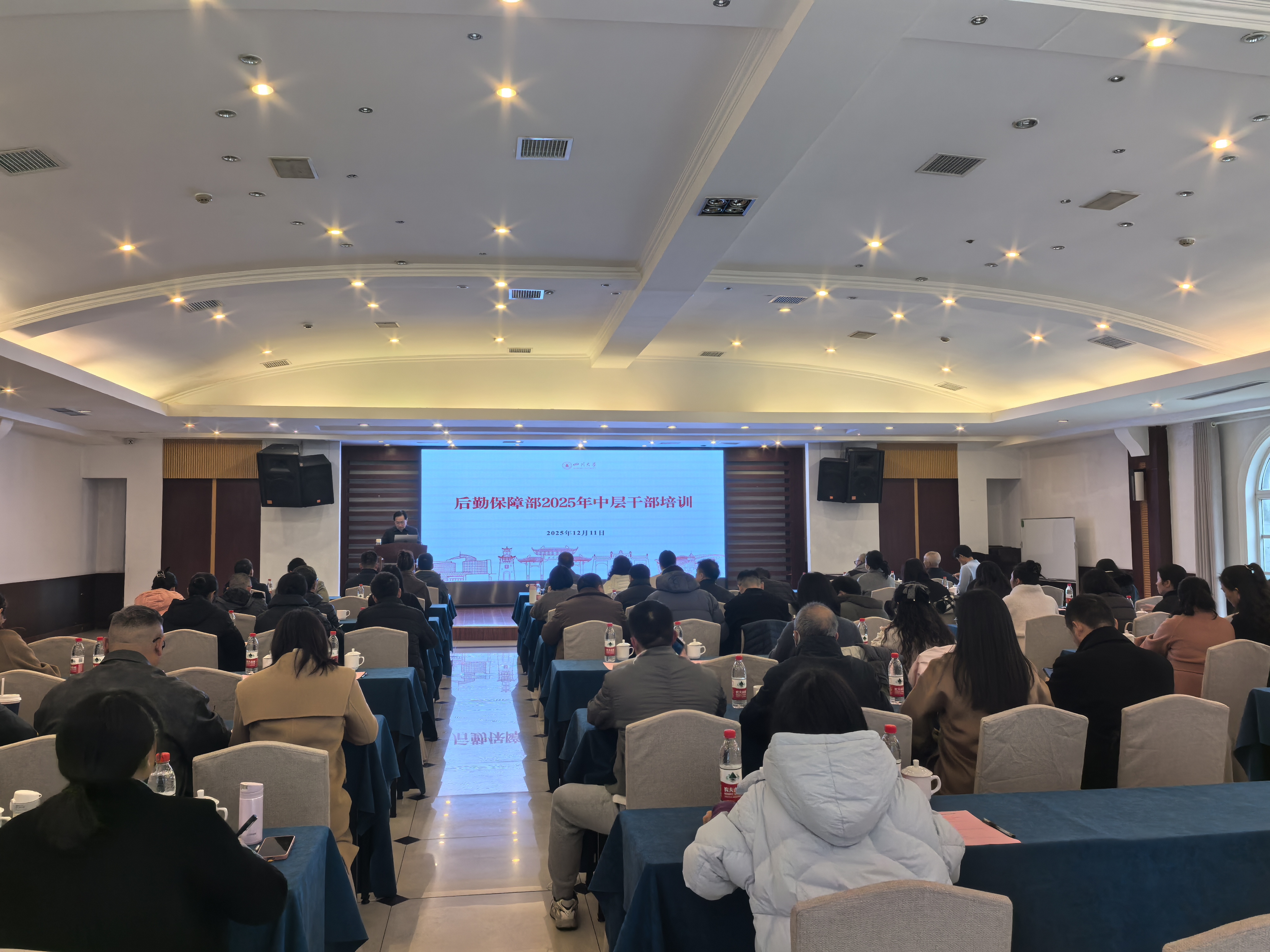 12月11日,后勤保障部2025年中层干部培训在科华苑宾馆多功能厅举行,本次培训的主题是“强化管理能力,提升服务水平,助力一流大学建设”。会议由后勤保障部党委书记韩杰同志主持,后勤保障部、社区建设办公室班子成员及全体中层干部共70余人参加。