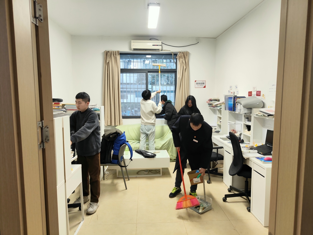 本次期末劳动教育实践活动中,宿舍工作人员和同学们一起对“一站式学生社区”公共服务空间进行了彻底清洁,擦拭桌椅、清理书架、打扫地面、规整设施,确保每一个角落窗明几净、整洁有序。通过此次活动,不仅让宿舍公区环境焕然一新,同学们也在协作中增进了同窗情谊,体会了劳动带来的成就感。