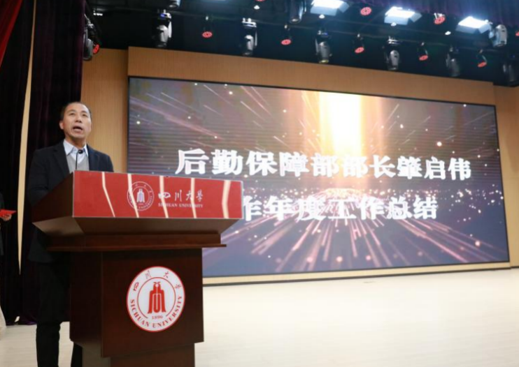后勤保障部部长肇启伟在年度工作总结中指出,2025年后勤保障部持续加强党建工作、筑牢廉洁后勤与校园安全防线,深化综合改革,高质量完成重要活动保障,圆满完成乡村振兴帮扶任务,持续优化社区治理,餐饮、住宿、校园环境等服务保障工作亮点纷呈,眉山校区运行平稳,师生生活服务持续优化,公房管理更趋规范,斩获高校后勤“服务创新力”全国第一等多项行业及校级荣誉。他强调,2026年是“十五五”规划谋篇布局的关键之年,是后勤深化改革、提质增效的攻坚之年,部门将以高质量党建引领事业发展,持续深化综合改革,聚焦服务领域优化提升,以学校130周年校庆为契机,打造优质后勤服务品牌,全力构建与世界一流大学相适配的一流后勤保障体系。全体后勤人要以先进典型为榜样,将荣誉转化为奋进动力,实干笃行、携手并肩,共同书写2026年后勤保障事业发展新篇章。