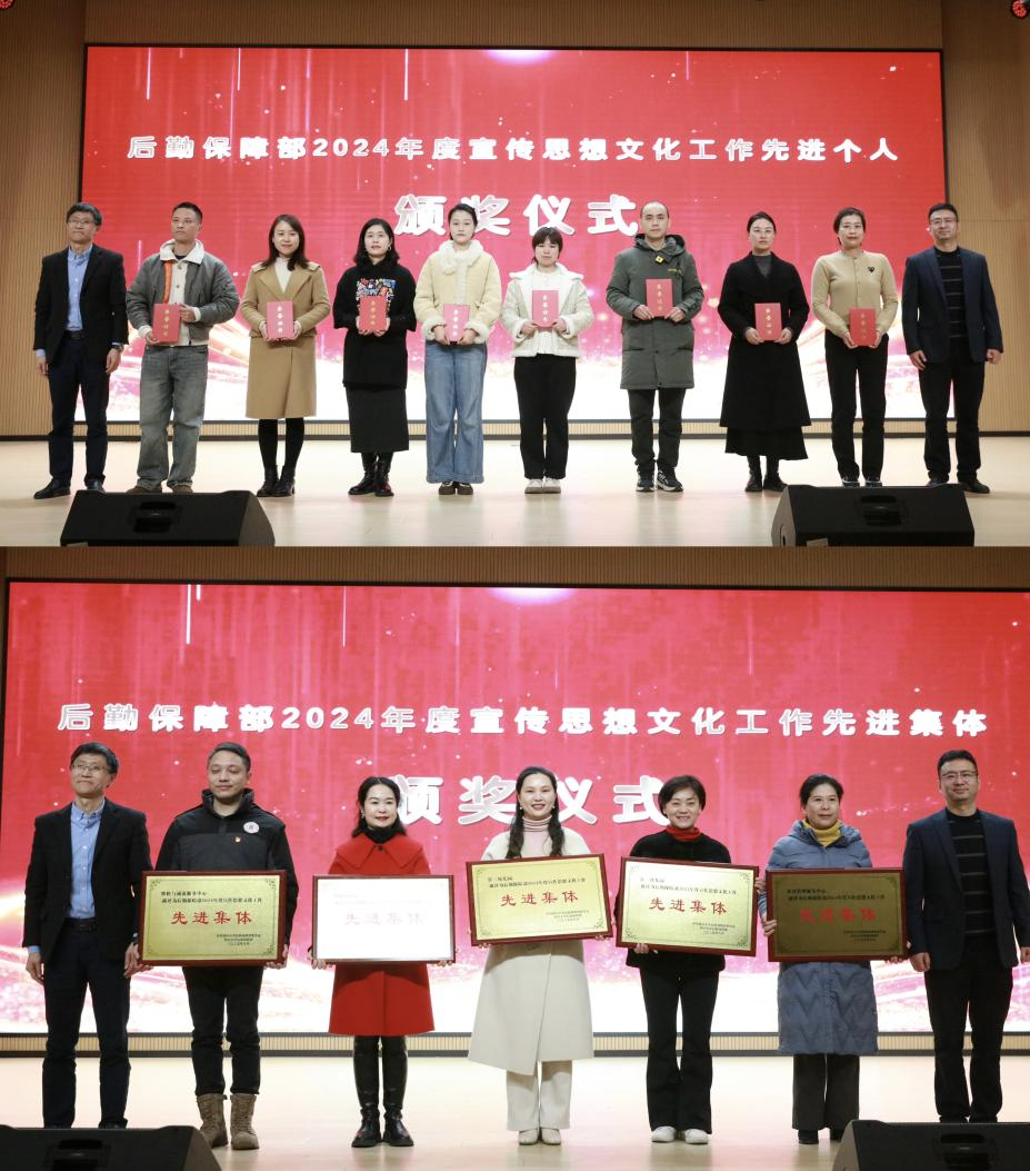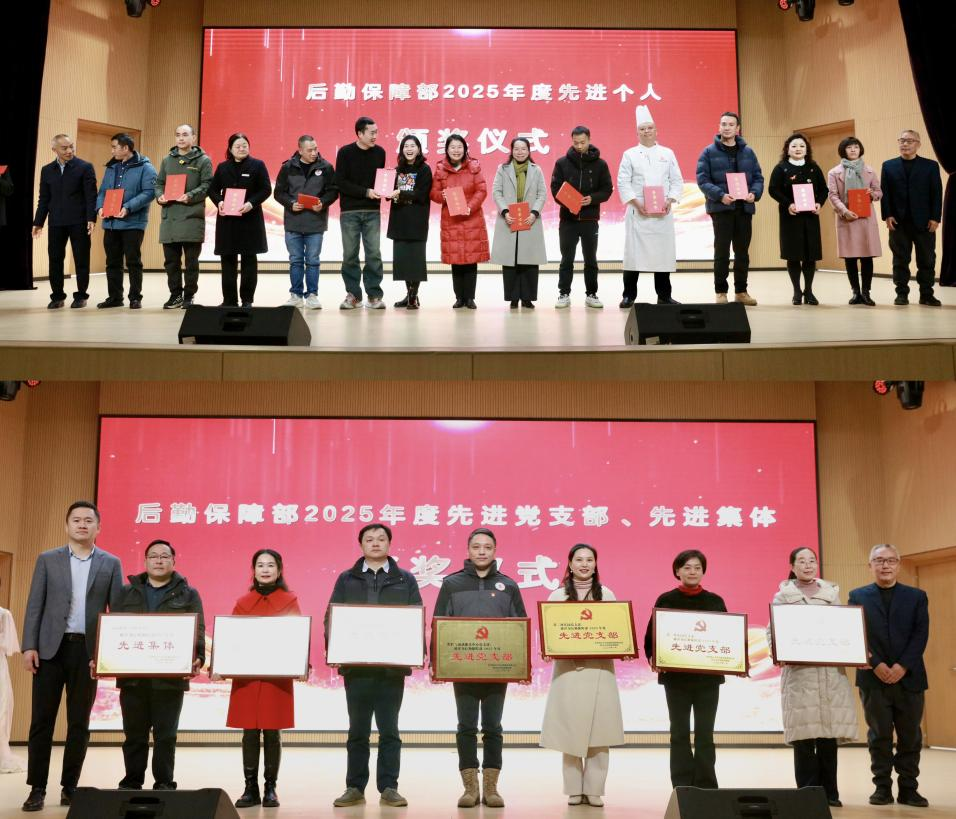 路佳等9人、维修与通讯服务中心等5个单位分别获得“2024年度宣传思想文化工作先进个人、先进集体”称号,张静等12名同志获得“后勤保障部2025年优秀共产党员”称号,陈敬竹等3名同志获得“后勤保障部2025年优秀党务工作者”称号,黄兰兰等19名职工获得“后勤保障部2025年先进个人”称号,社区建设办党支部等4个党支部获得“后勤保障部2025年先进党支部”称号,校医院等3个单位获得“后勤保障部2025年先进集体”称号。