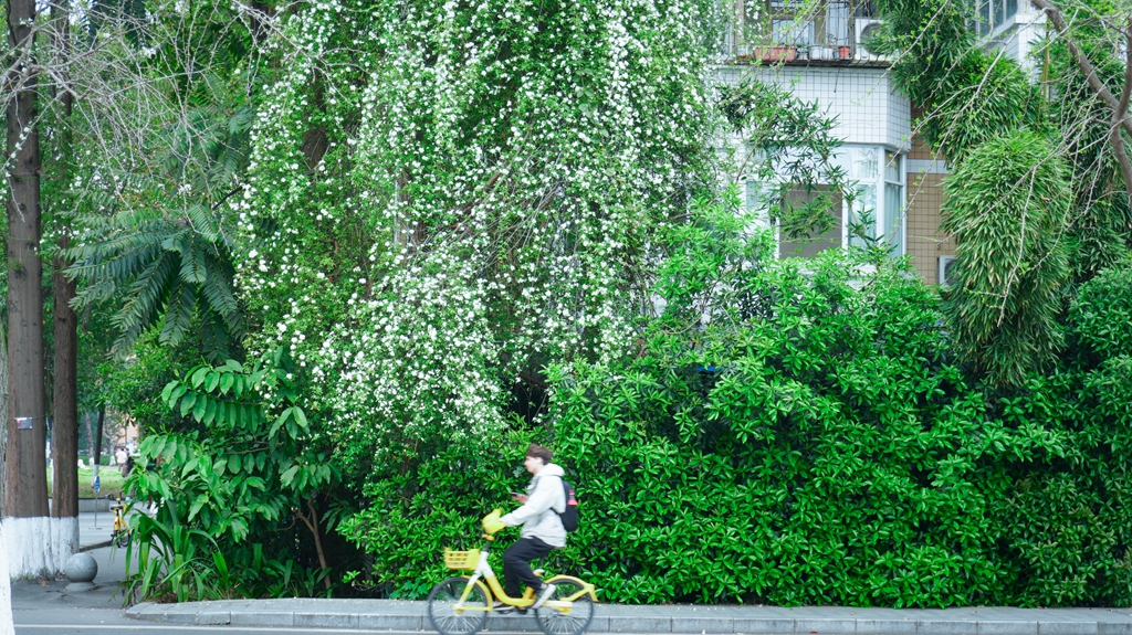 三月芳菲,微风中带着花香的轻甜。川大校园里的七里香,花开正盛,已迎来最佳观赏期。如瀑的白色花海倾泻而下,密密匝匝缀满枝头,为春日校园增添了一抹清新浪漫的色彩。