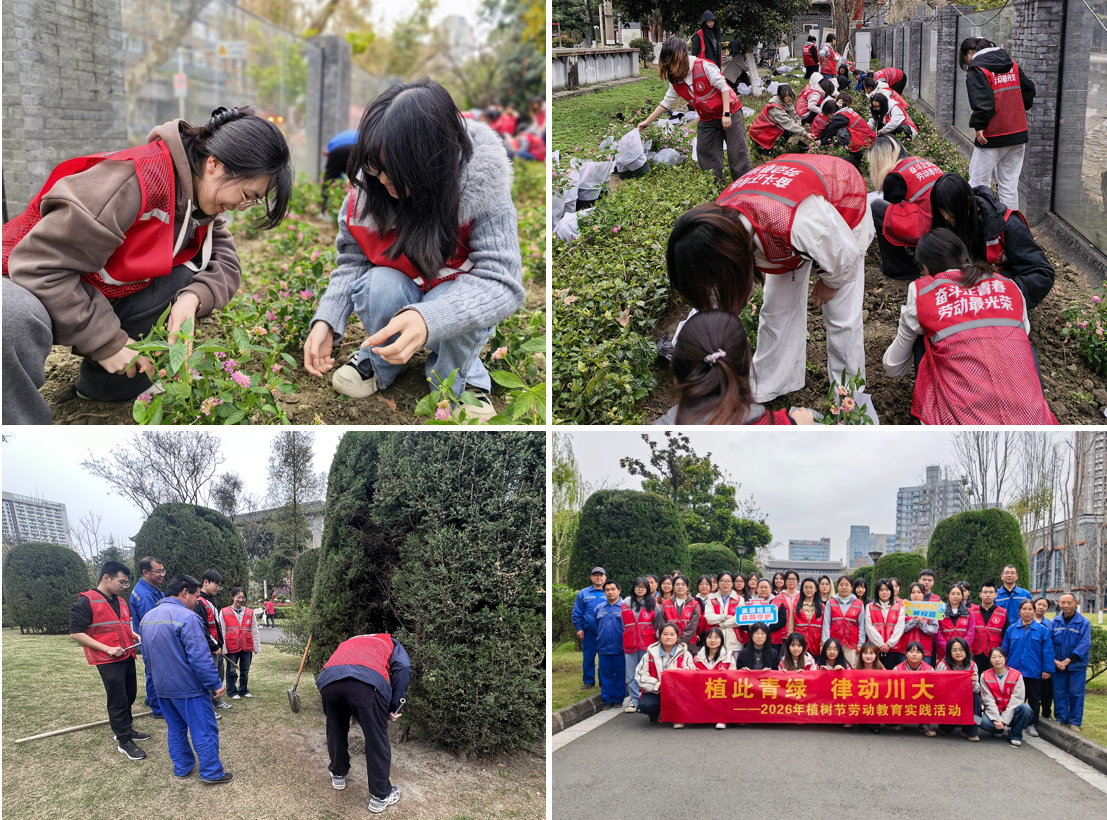 为厚植生态文明理念,丰富劳动实践内涵,在第48个植树节到来之际,后勤保障部校园物业管理服务中心以“‘植’此青绿,律动川大”为主题,联合学工部、华西公共卫生学院等单位,先后在华西校区和江安校区组织开展了植树节劳动教育实践活动,引导学生在劳动中厚植绿色发展理念,在实践中涵养责任担当。