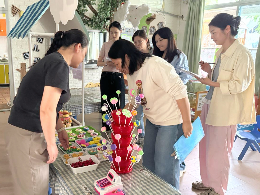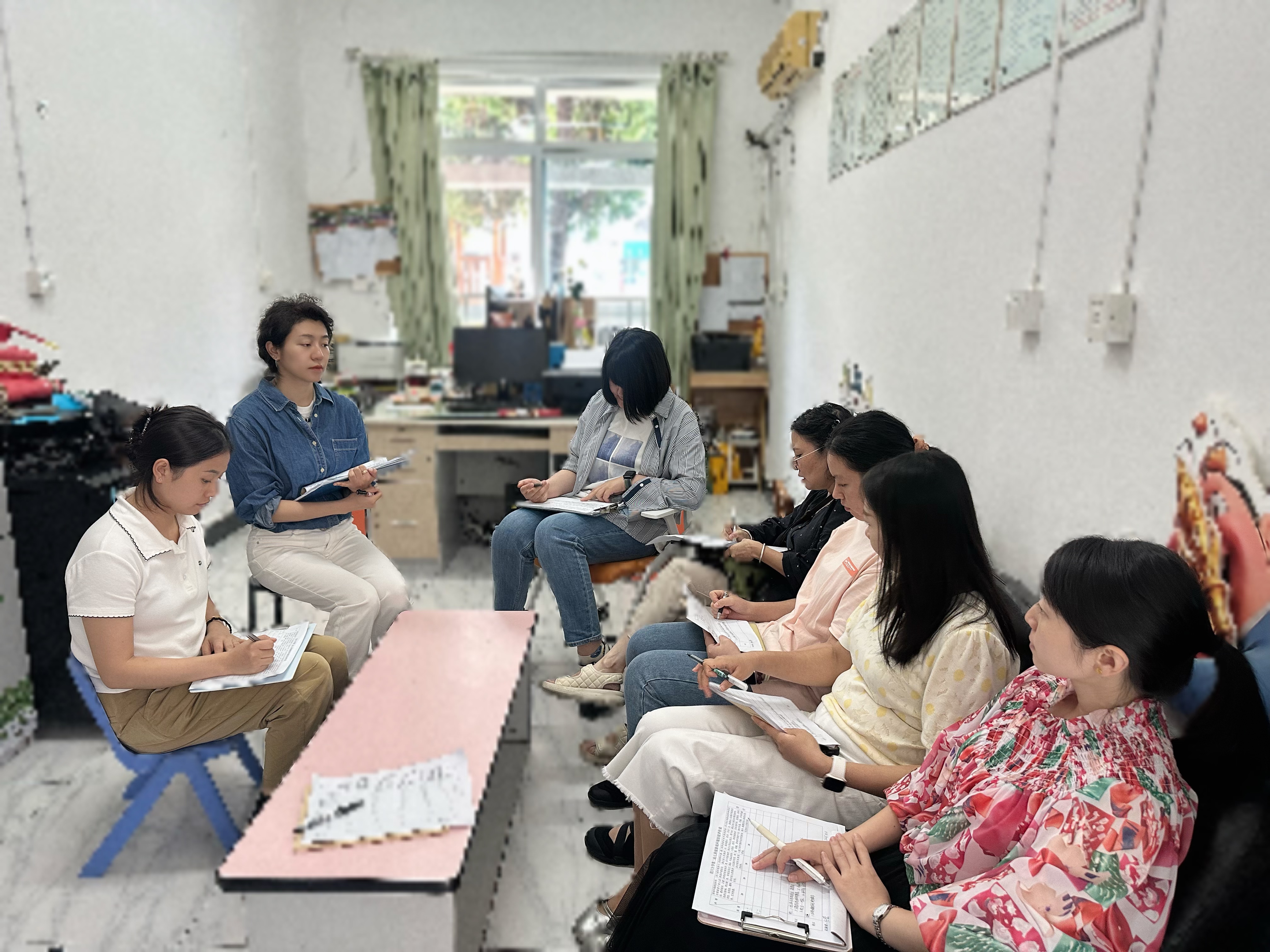 观摩结束后,老师们分组研讨,现场既有对环境设计奇思妙想的赞叹、对材料投放巧手匠心的欣赏,也有对环境调整与材料优化的实用建议,更有以他人为镜的自我成长省悟。大家畅所欲言,在思想碰撞中凝聚共识。