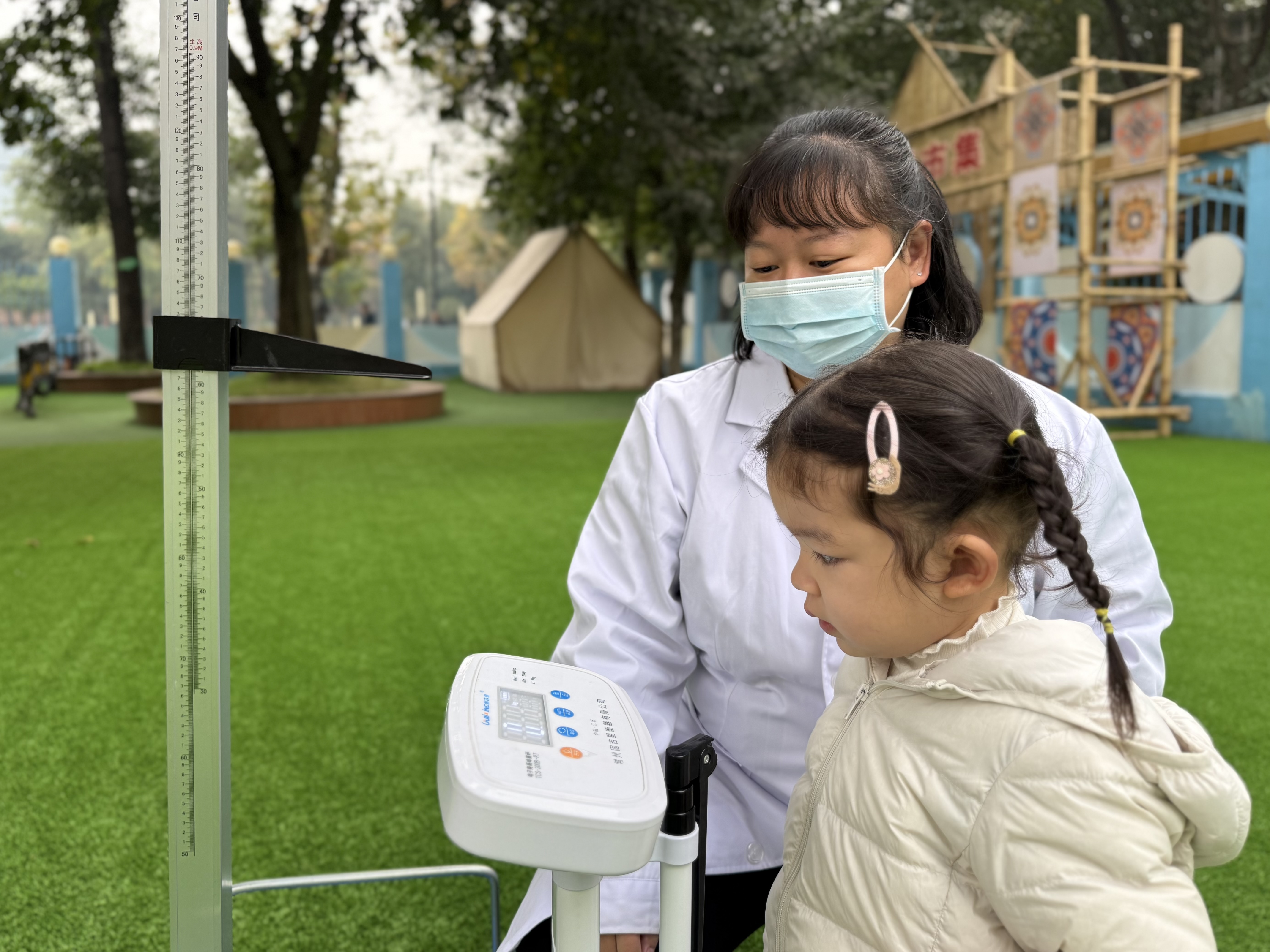 活动前期,我园保健医生已完成每学期的定期测量,通过建立长期的健康管理体系,能够及时发现生长发育异常的孩子,为个性化养育指导提供数据支撑。