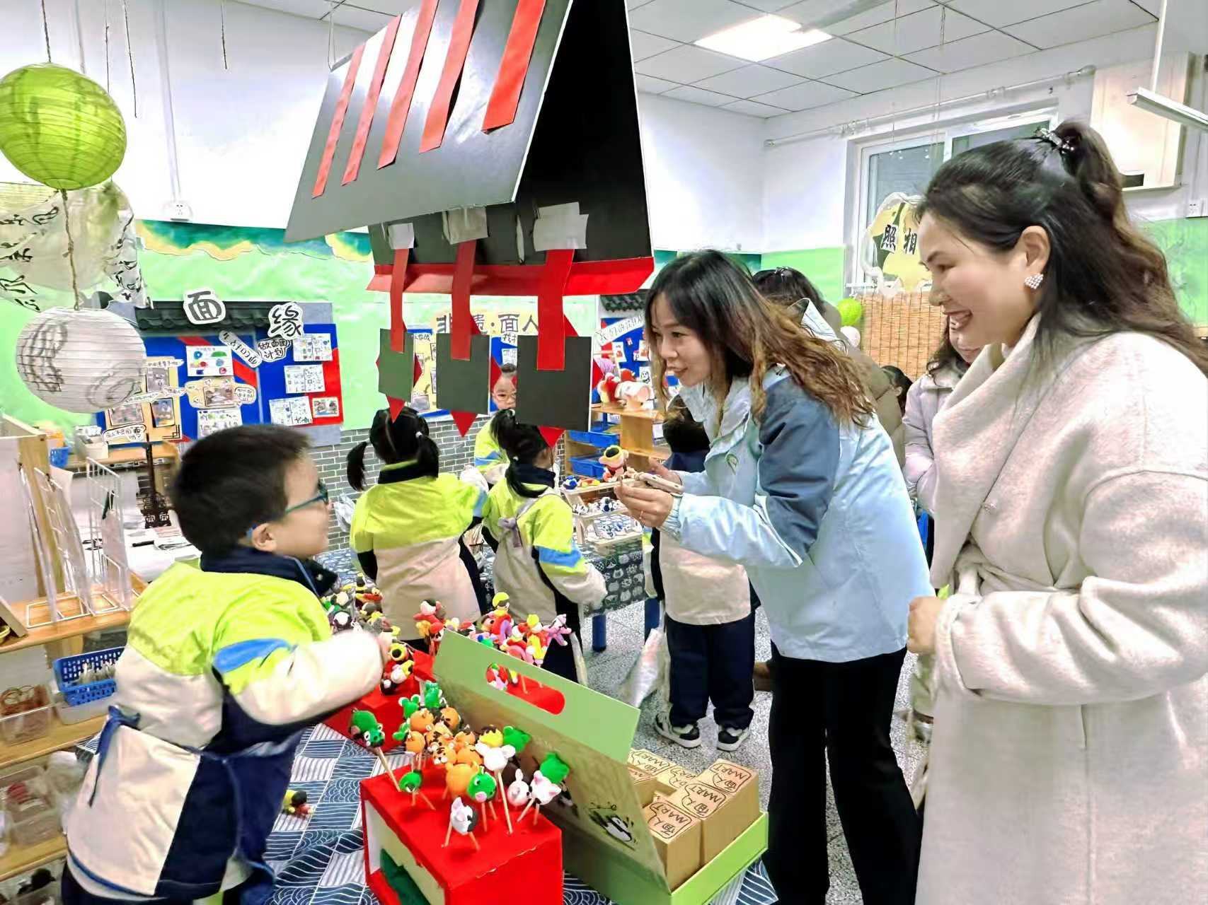 在园领导的陪同下,来访教师参观了园所环境,观摩了孩子们的早操及自主游戏。在游戏现场,老师们驻足水墨区,观看幼儿用稚嫩的笔触进行水墨创作,感受传统书画文化的熏陶,展现孩子们的童真童趣。角色游戏中,孩子们化身非遗小传人,模拟传统手工艺制作过程,在互动中体验传统文化内涵。园领导围绕非遗课程特色打造游戏化传承路径和幼儿本位的文化启蒙理念与观摩老师展开深度交流,共同探讨非遗文化融入学前教育的实践方法与经验。