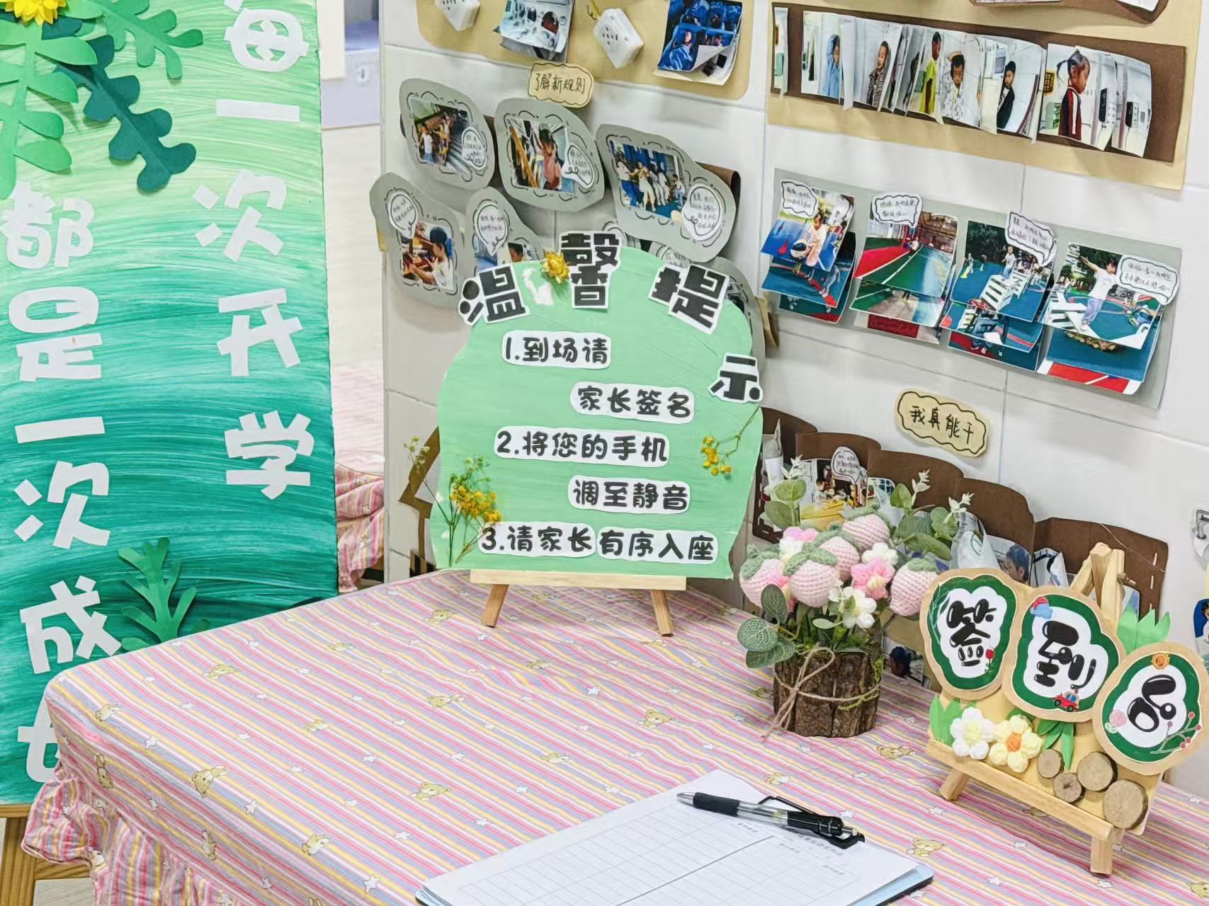 活动当天,家长们怀揣对孩子的爱与期盼走进幼儿园,在签到处通过“成长足迹”展板,直观了解孩子们在园的精彩瞬间,真切走进孩子的幼儿园生活,为本次家长会开启温暖序幕。
