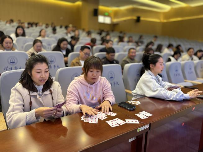 王老师结合小学数学教学专业经验,聚焦幼儿数学思维培养展开分享,提出“生活即课堂”的核心理念,强调数学藏在生活细节中,家长要善于捕捉日常教育契机,用生活化场景轻松启蒙孩子数学思维。王老师以计时、物品分类、超市购物等真实场景,分享实操性极强的启蒙方法,将抽象数学知识融入亲子日常;还现场播放“一一对应、数实物”数学教学视频,带领家长玩扑克牌数学小游戏,直观演示低龄幼儿数学启蒙的正确路径,方法简单易复制,方便家长居家落地运用。