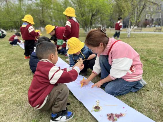在草地上各班级开展着丰富有趣的活动。有春日手工制作,也有草地游戏,孩子们在动手操作和轻松游戏中感受春天的活力。草地上欢笑声不断,孩子们或认真制作春天的小作品,或参与有趣的小游戏,在奔跑与欢笑中尽情释放童真。随后是期待已久的春日野餐时光。孩子们围坐在一起,分享美味点心,在暖暖的阳光和微风中享受轻松愉快的春日时刻。