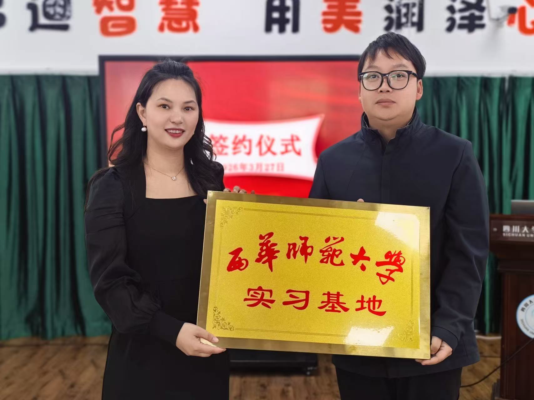 胡园长介绍幼儿园办园理念、师资队伍建设、课程特色及发展规划等基本情况,对西华师范大学的信任表示感谢,表明将深化双方合作,携手共育幼教英才。随后,双方代表共同签署合作协议并完成授牌。
