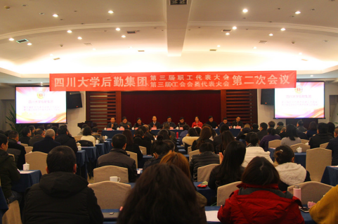 12月7日上午,在雄壮的国歌声中,四川大学后勤集团第三届职工代表大会第二次会议暨第三届工会会员代表大会第二次会议在望江校区科华苑宾馆多功能会议室开幕。